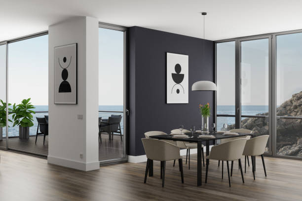 Buildings facing the coast should employ white along with seafoam green and sandy natural and ocean blue color schemes to mimic coastal aesthetics. Interiors enjoy brightness thanks to these colors while a relaxed breezy atmosphere emerges as their main result.